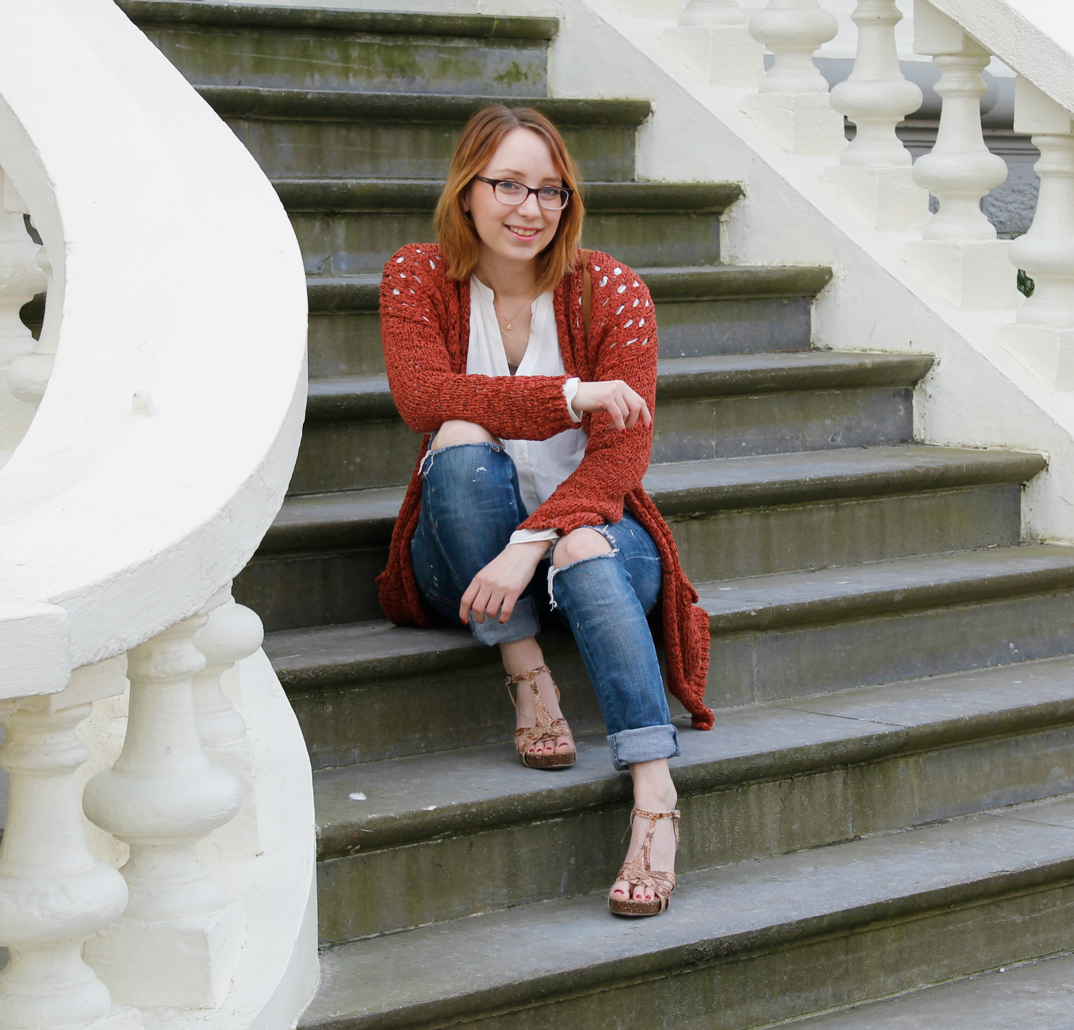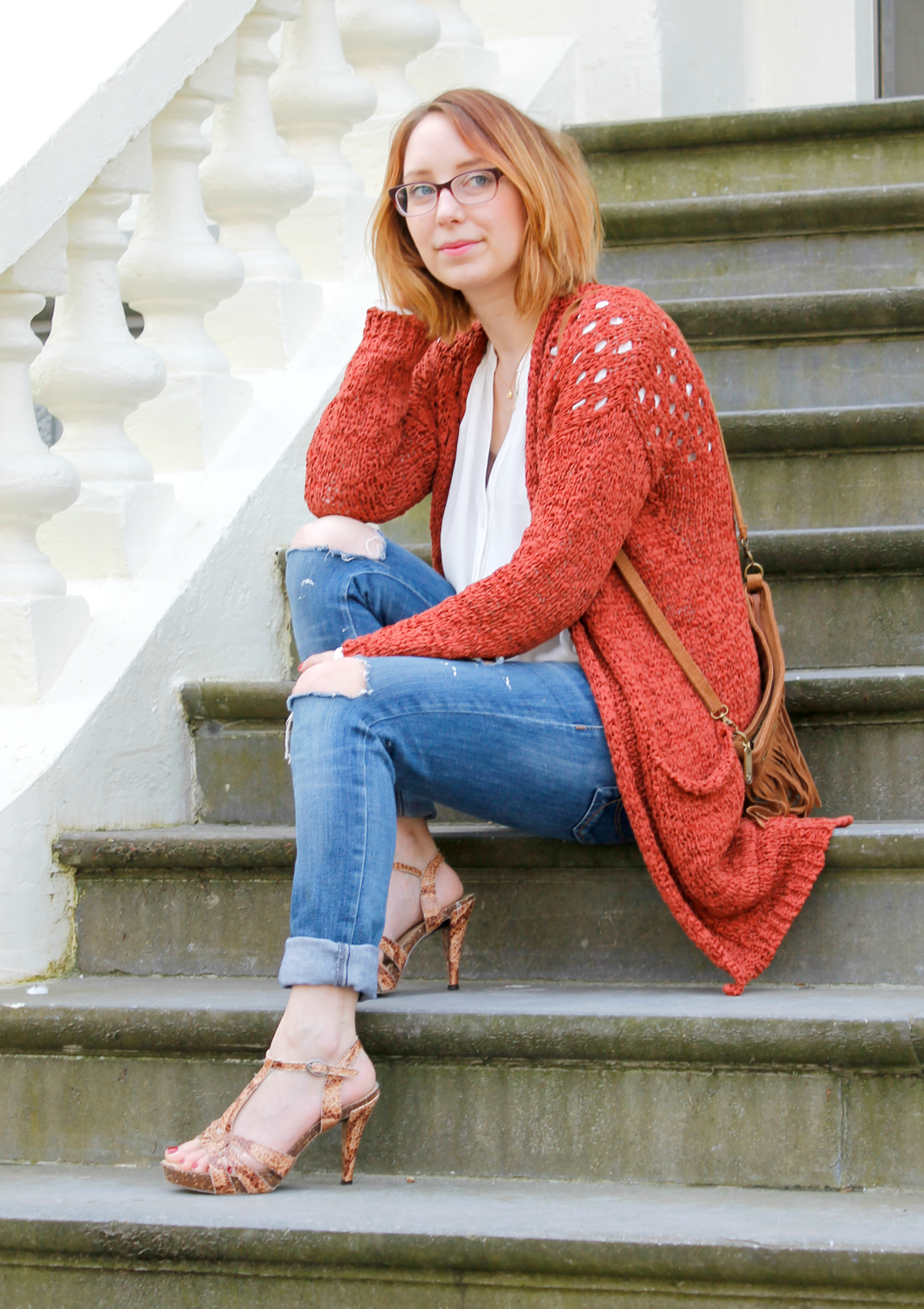 Vest: Costes | blouse: Costes | jeans: zelf aangepast | schoenen: jaren terug gekocht in Mallorca | tas: El Dragonfly